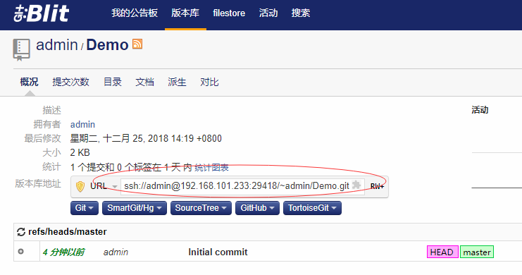 克隆一个项目(分别从github仓库、自己搭建的gitblit 仓库上获取) 教程开始之前,补充一个知识点: 本地仓库和远程git仓库的连接方式有两种:HTTPS 和 SSH,很多时候都是直接使用 HTTPS URL 方式克隆项目到本地,当然也有有些人使用SSH URL克隆到本地。这两种方式的主要区别在于: 第1步:此处介绍通过SSH URL方式传输,使用之前需要先将本地的 SSH 公钥配置到 Git 服务器上。 先查看SSH Key。在C盘用户主目录用户目录下,看看有没有.ssh目录,如果有,再看看这个目录下有没有id_rsa和id_rsa.pub这两个文件,如果已经有了,可直接跳到第2步。 图片:1545277-20181226113405247-1942190673.png ![]() 如果没有上述文件,则需要创建一个SSH Key,在任意文件夹下点击右键,选择 Git GUI Here。在弹出的程序中选择主菜单的【Help】→【Show SSH Key】: 图片:1545277-20181226114055886-180594107.png ![]() 如果没有Key,则点击“Generate Key”生成一个SSH Key: 图片:1545277-20181226115510598-122268944.png ![]() 把生成的全部内容拷出来。 如果一切顺利的话,可以在用户主目录里找到.ssh目录,里面有id_rsa和id_rsa.pub两个文件,这两个就是SSH Key的秘钥对,id_rsa是私钥,不能泄露出去,id_rsa.pub是公钥,可以放心地告诉任何人。(其他创建SSH Key方式:通过Shell命令方式创建) 第2步:把 SSH Key 填到Git 服务器的配置中。 GitHub服务器:登陆GitHub,【头像】→【Settings】→【SSH and GPG Keys】→【New SSH Key】,填入上一步的复制的SSHKey,然后【Add SSH Key】: 图片:1545277-20181226121245026-1546328791.png ![]() Gitblit 服务器(自己搭建 Git 服务器,Gitblit的安装教程请看这里),登录 Gitblit账户,在【头像】→【用户中心】→【SSH Keys】,填入上一步的复制的SSHKey,然后【添加】 图片:1545277-20181226132901278-1097084455.png ![]() 为什么GitHub需要SSH Key呢?因为GitHub需要识别出你推送的提交确实是你推送的,而不是别人冒充的,而Git支持SSH协议,所以,GitHub只要知道了你的公钥,就可以确认只有你自己才能推送。 第3步:要克隆 GitHub 或 Gitblit上的项目,先要获取对应远程存储库的路径(注意:此处使用 SSH URL 方式): GitHub仓库:从 GitHub项目页面上得到对应存储库的 giturl 路径: 图片:1545277-20181226122012947-1020013679.png ![]() Gitblit 仓库:在存储库页面这个位置得到存储库的 giturl 路径: 图片:1545277-20181226133807571-386299740.png ![]() 第4步:在本地文件夹的空白位置处,右击鼠标,在菜单中选择【Git克隆】: 图片:1545277-20181226122429702-1374729661.png ![]() 把git 路径填写到URL,并选择本地文件目录,点击【确定】,弹出下载进度窗口。(服务器端至少要有一个文件,否则 pull的时候会报错 fatal: Couldn't find remote ref HEAD) 图片:1545277-20181227111642077-139096442.png ![]() 克隆成功,则在文件夹上就可以看到角标标识: 图片:1545277-20181226122800854-457145087.png ![]()